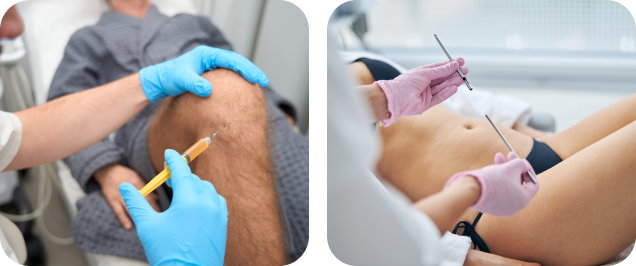 - Allergic reactions to injected local anaesthetics, contrast, or antiseptic used for skin disinfection, re-quiring further treatment.
